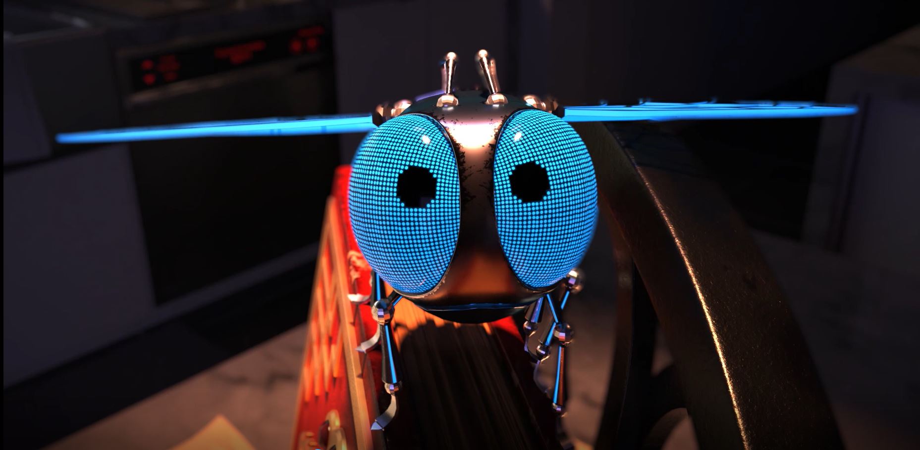 I was lead on story, character design, rigging and animation. I produced all After Effects elements (Camera POV interface; final credits), and painted any non-procedural textures.