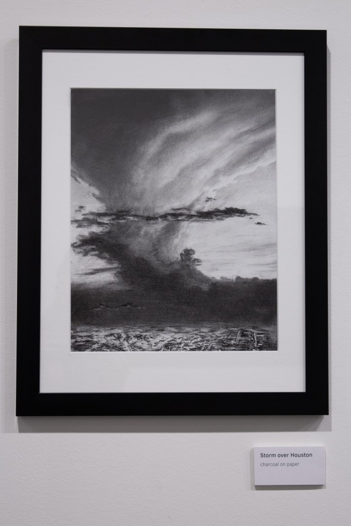 Storm over Houston, charcoal on paper, 11” X 14”, 2020